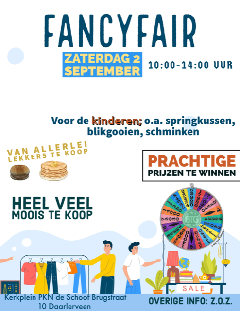 Op zaterdag 2 september van 10:00 tot 14:00 uur gaan we weer een FancyFair organiseren.